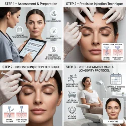 در خدمات تزریق بوتاکس، هدف ما به حداکثر رساندن فاصله بین جلسات درمان با رعایت ایمنی کامل است. این فرآیند شامل سه مرحله کلیدی است: