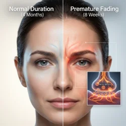 | دوز تزریق (Dosage Units) | رابطه مستقیم با اشباع گیرندهها. دوز پایین (میکرو بوتاکس) سریعتر توسط پایانههای عصبی جدید دور زده میشود. | دوز پایین: ۶ تا ۸ هفته دوز استاندارد: ۳ تا ۴ ماه |